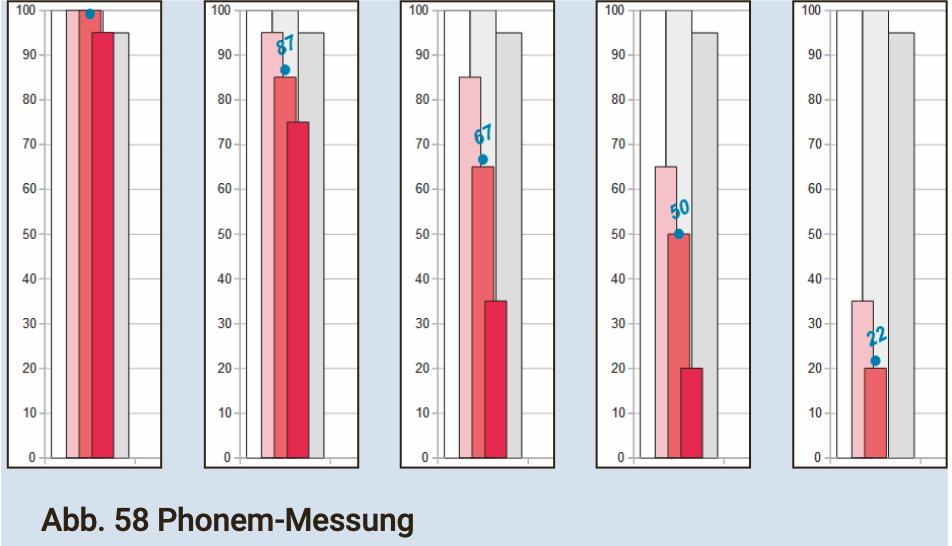 Maximal zu verstehen ist das, was ein gesundhörender Mensch versteht [Abb. 58 Phonem-Messung – auf Seite 69].