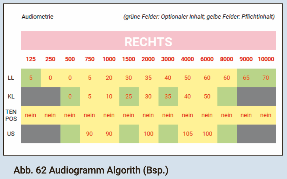 Die folgenden modifizierten Messungen ermöglichen einen umfassenden Überblick über die Gehörfunktionen und bilden im Gesamten die Berechnungsvorlage für Algorith: