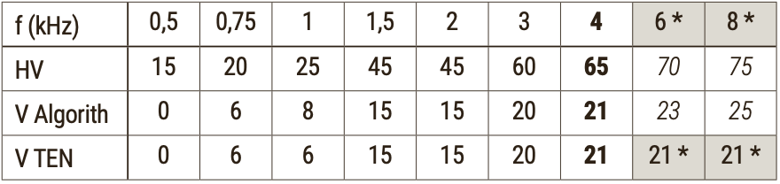 Bei einem Hochtonsteilabfall und nicht mehr messbarer (bzw. funktionierender) Hörfunktion, belassen Sie die Verstärkung auf dem Wert des letzten korrekt „funktionierenden“ Kanals [Abb. 59 TEN positiv – auf Seite 69].