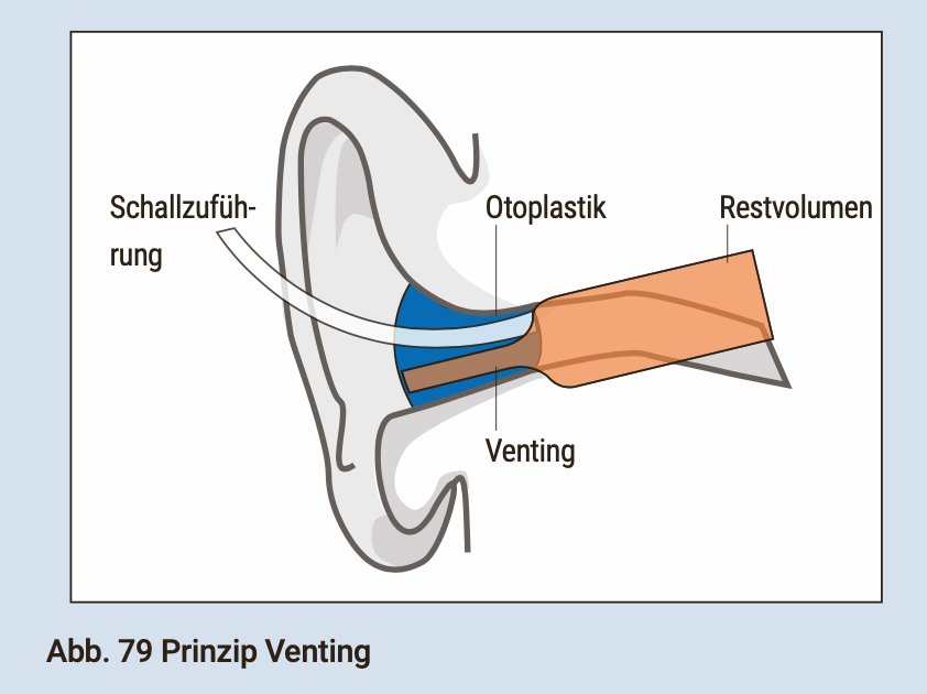Der Gehörgang weist physikalisch ähnliche Eigenschaften wie ein einseitig geöffnetes Rohr auf und eine angesetzte Otoplastik wirkt wie ein Helmholtzresonator [Abb. 79 Prinzip Venting] [12].