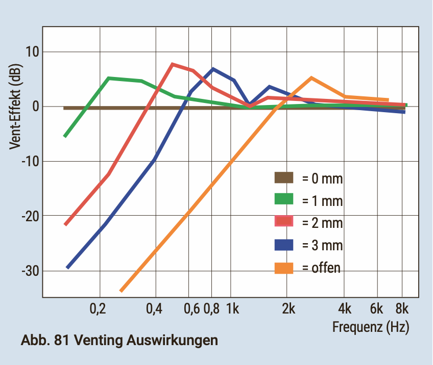 Veränderungen am Restvolumen bzw. der Zusatzbohrung, beeinflussen die Resonanzfrequenz des durch die Otoplastik verschlossenen Gehörganges [Abb. 80 Venting] [13].